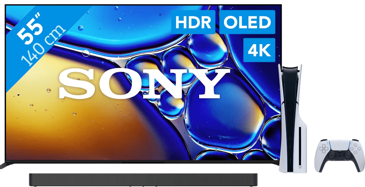 Jouez aux jeux PlayStation 5 comme les créateurs les ont imaginés avec le pack Sony 55″ Bravia 8 II 4K QD-OLED + Sony Bravia Theatre Bar 8 Noir + PlayStation 5 Slim Disc Edition. Télévision Obtenez l’ambiance cinéma chez vous avec la Sony Bravia 8 II 55″ QD-OLED (2025). Grâce à la résolution 4K, chaque détail est très net. Vous pouvez presque compter les brins d’herbe dans un champ. Cette Bravia 8 II est une télévision QD-OLED. Les pixels de l’écran s’illuminent ou s’atténuent automatiquement, sans éclairage LED. La différence entre les parties claires et sombres de l’image est donc importante. Le noir est vraiment noir. Grâce à une couche de minuscules points quantiques, les couleurs ressortent de l’écran. Ces particules agissent comme un filtre, ce qui rend chaque détail de couleur visible. Barre de son Avec la barre de son Sony Bravia Theatre Bar 8, profitez d’un son clair et détaillé pour votre télévision. Cette barre de son améliore le son de votre TV, ce qui vous permet de mieux entendre les films et les séries. Grâce à la technologie True Dolby Atmos, le son rebondit sur le plafond et les murs pour vous parvenir, créant ainsi un son spacieux et réaliste. Le son à 360 degrés donne l’impression que le son provient de tous les coins de la pièce, vous plongeant au cœur de votre musique, vos films et vos séries préférés. Vous avez une télé Sony Bravia ? Dans ce cas, le son provient à la fois de la barre de son et de la TV, ce qui donne encore plus de profondeur au son. PlayStation 5 Faites passer votre expérience de jeu au niveau supérieur grâce à la PlayStation 5 Slim Disc Edition. Cette PlayStation 5 est équipée d’un lecteur de disque, ce qui vous permet de lire des jeux physiques, mais aussi des films Blu-ray. La PS5 Slim est 30 % plus petite que son prédécesseur. Elle prend donc moins de place sur votre bureau ou à côté de votre TV. La PS5 Slim dispose d’une capacité de stockage de 1 téraoctet, alors que la PlayStation 5 originale offre 825 gigaoctets d’espace de stockage. Vous devez donc moins souvent supprimer les jeux téléchargés. (EAN: 6151133441476)